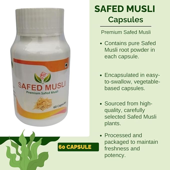 Shri Premium Safed Musli – शक्ति, Stamina और Energy बढ़ाने वाला Ayurvedic Capsule – 60 कैप्सूल